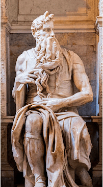 These horns were based on the mistranslation of Jerome’s Vulgata in the passage of the Book of Exodus, chapter 34, verse 29. There, the original Hebrew text says that “his face was horned” after talking to God. This is an expression in Hebrew that means “his face shone,” which makes a lot more sense since Moses was using a veil when addressing the people, exactly to cover the uncomfortable glare from his face. Jerome’s idea is that the Bible should be translated as literally as possible in terms of meaning, but in this passage, we don’t know why he chose to be literal. Maybe he didn’t know this expression; who knows?